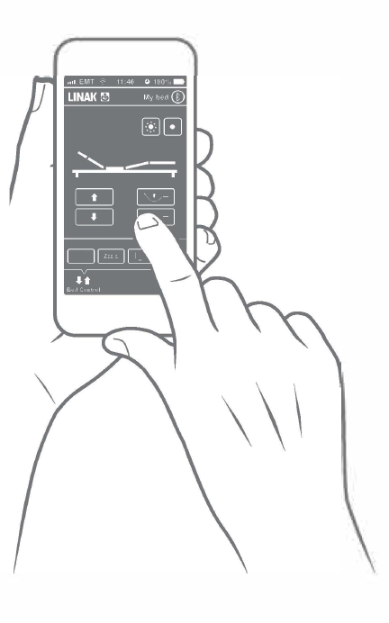 Download Bed Control app Linak i app-store til iOS eller Android. Aktiver Bluetooth på din smartphone/tablet.